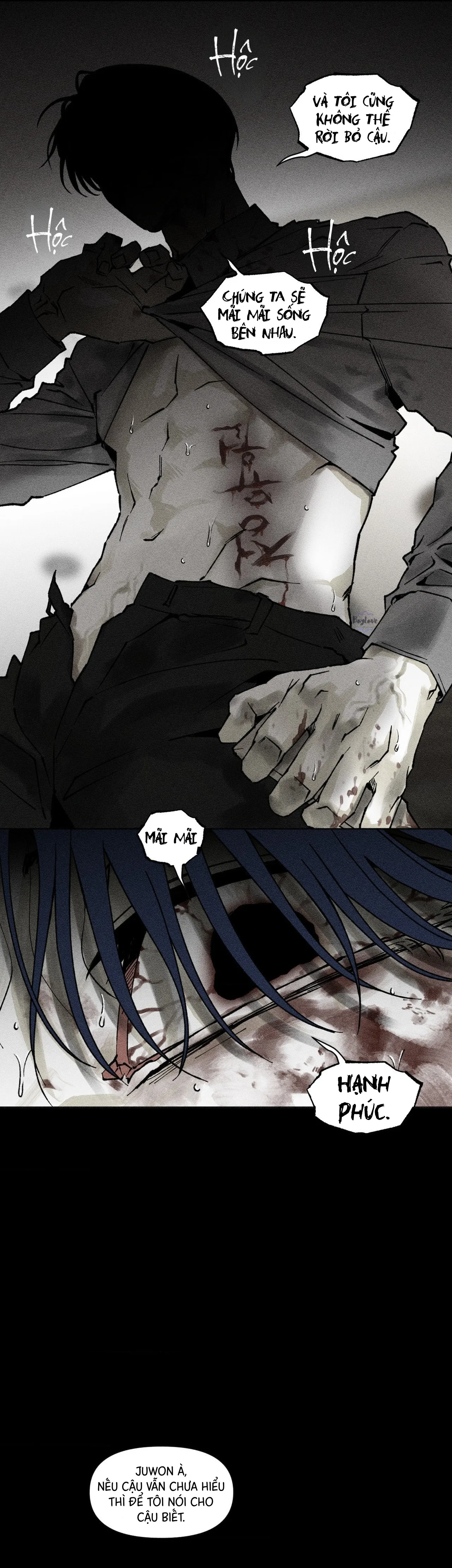 Mọe, t bị dắt như một con bò thiệt bây ơi, cú twist sốc vcl mặc dù nó đã mập mờ cho chúng ta bt được điều đó thông qua những hành động kỳ lạ của Dohun rồi nhưng mà bruh, đọc mà thật sự mê mẩn art, storyboard, tâm lý, character development của tác giả. Lâu lắm rồi mới tìm được một bộ hợp gu ngoài Obey Me và Love is Hell, kiểu gu của tôi là mấy anh top Yandere, bệnh hoạn, súc vật vậy mới khoái nên mấy bộ t khoái toàn là điên khùng không hà. Bộ này tôi cực thích chỉ sau Love is Hell thôi ấy