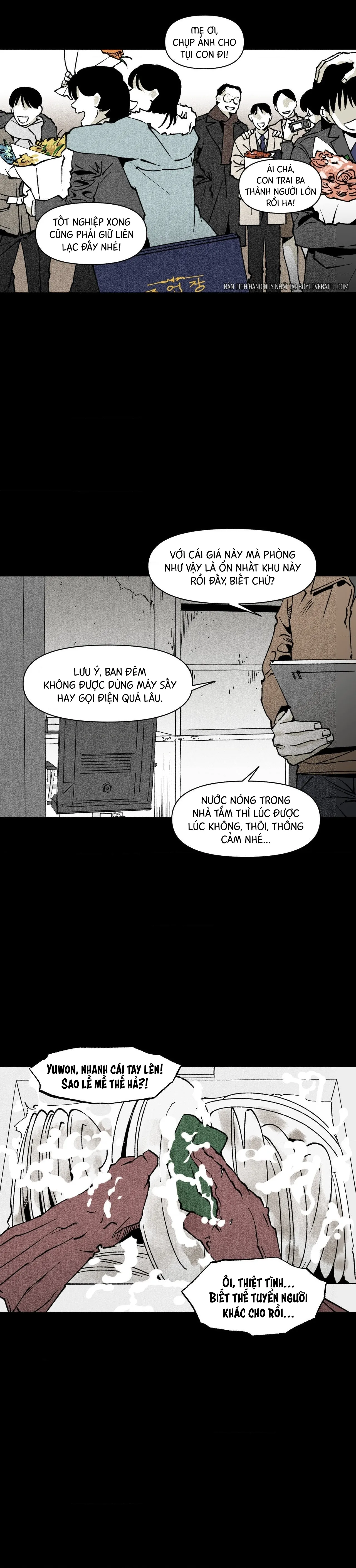 Thêm nữa, chắc b cũng nhận ra, Yuwon cũng là kiểu người “chỉ nghe cái gì mình muốn nghe”, não bộ chỉ chọn lọc những điều bản thân Yuwon muốn. Yuwon coi Dohun là trẻ mồ côi giống mình, nhưng thực sự có đứa trẻ mồ côi nào sống trong cô nhi mà không làm việc nhà, không biết giặt giũ, nấu cơm hay không. Thế mà Yuwon chả thèm nghi ngờ những điều đó.